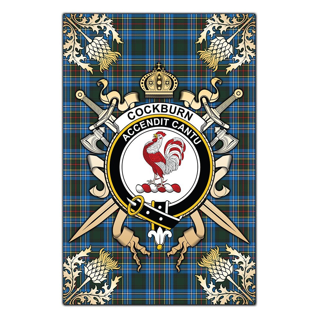 Cockburn Modern Tartan Crest Black Garden Flag - Gold Thistle Style
