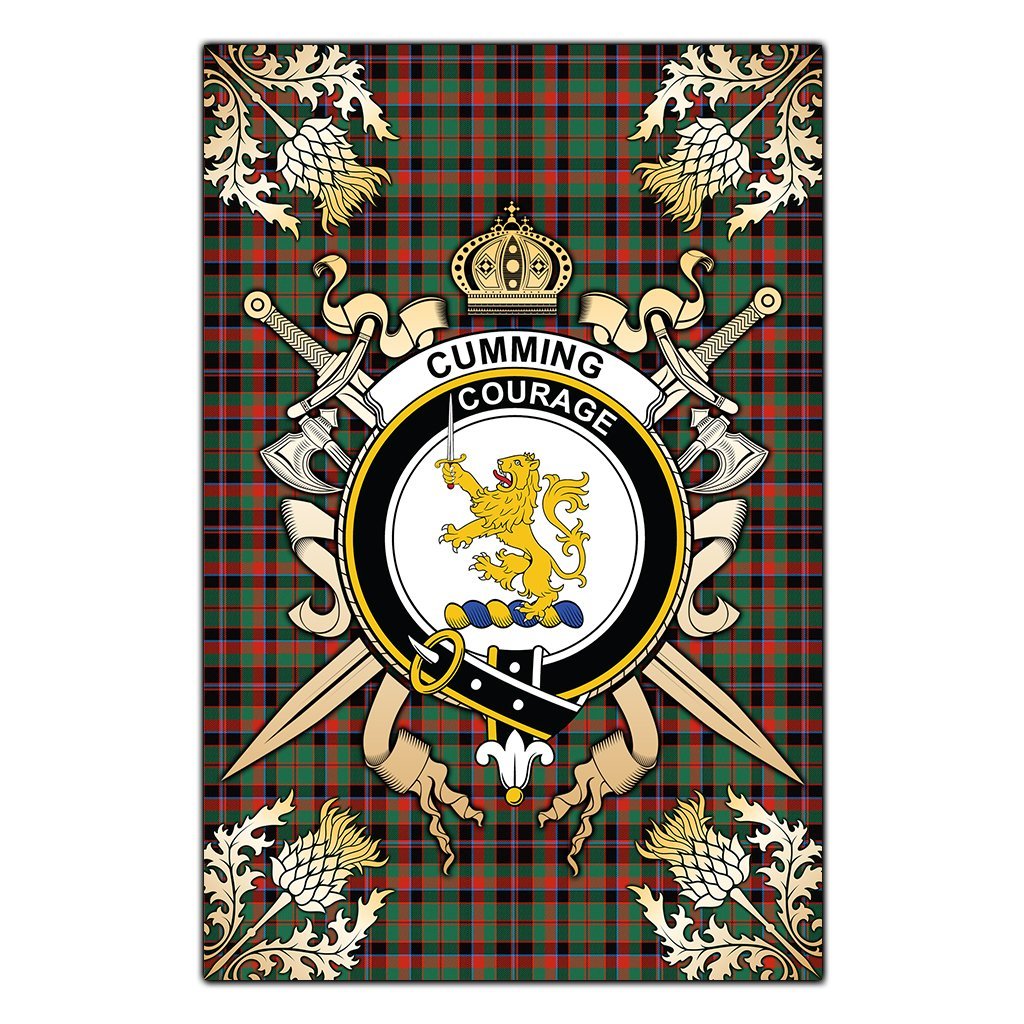 Cumming Hunting Ancient Tartan Crest Black Garden Flag - Gold Thistle Style