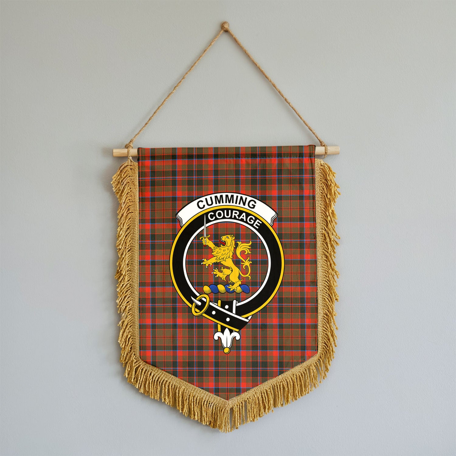 Cumming Hunting Weathered Tartan Crest Wall Hanging Banner - Wood Pole