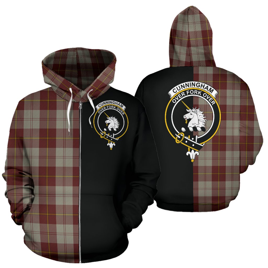 Cunningham Burgundy Dancers Tartan Crest Zipper Hoodie - Half Of Me Style