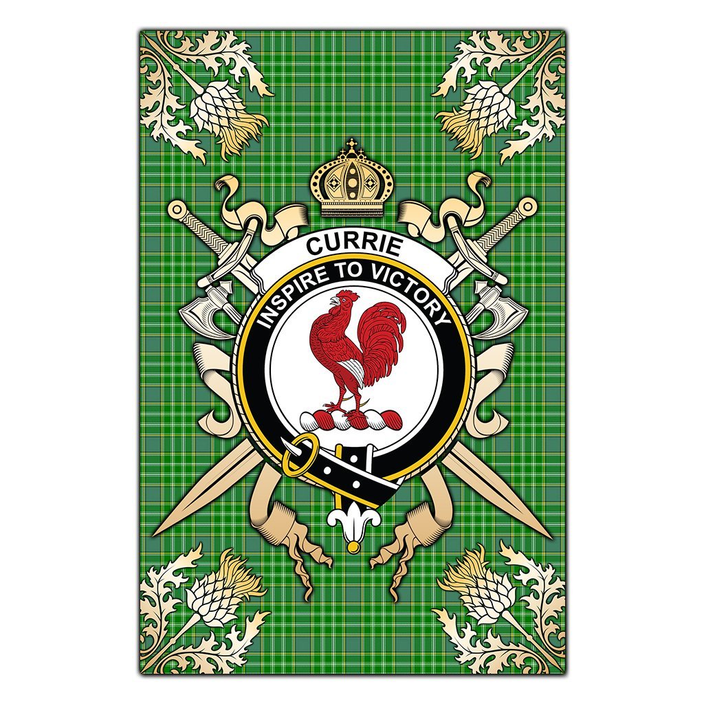 Currie Tartan Crest Black Garden Flag - Gold Thistle Style