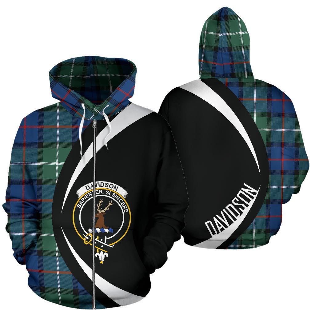 Davidson of Tulloch Tartan Crest Zipper Hoodie - Circle Style