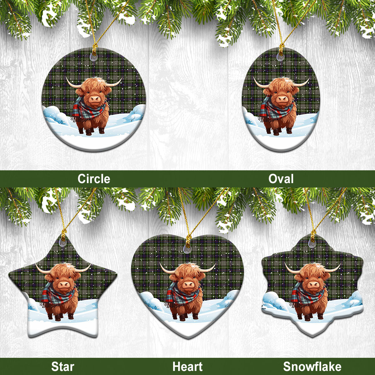 Davidson Tulloch Dress Tartan Christmas Ceramic Ornament - Highland Cows Snow Style
