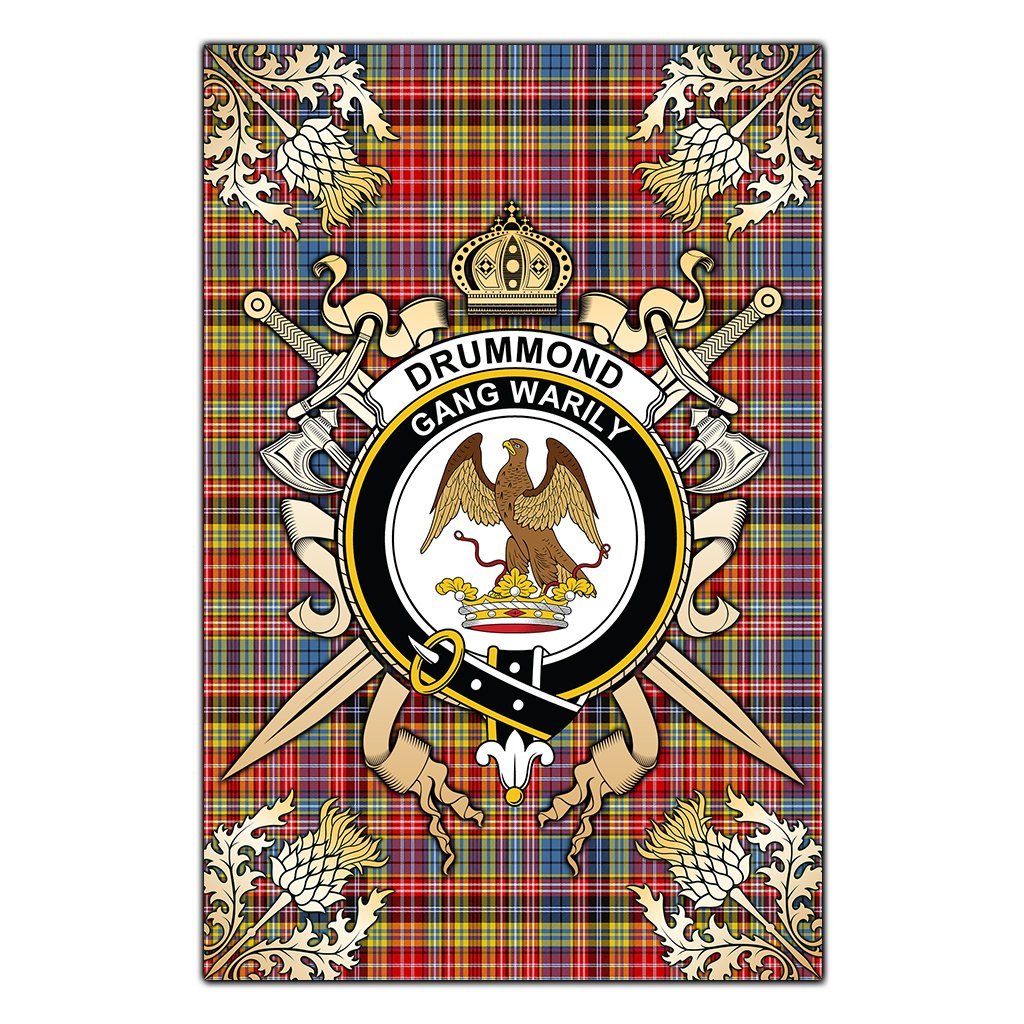 Drummond of Strathallan Tartan Crest Black Garden Flag - Gold Thistle Style