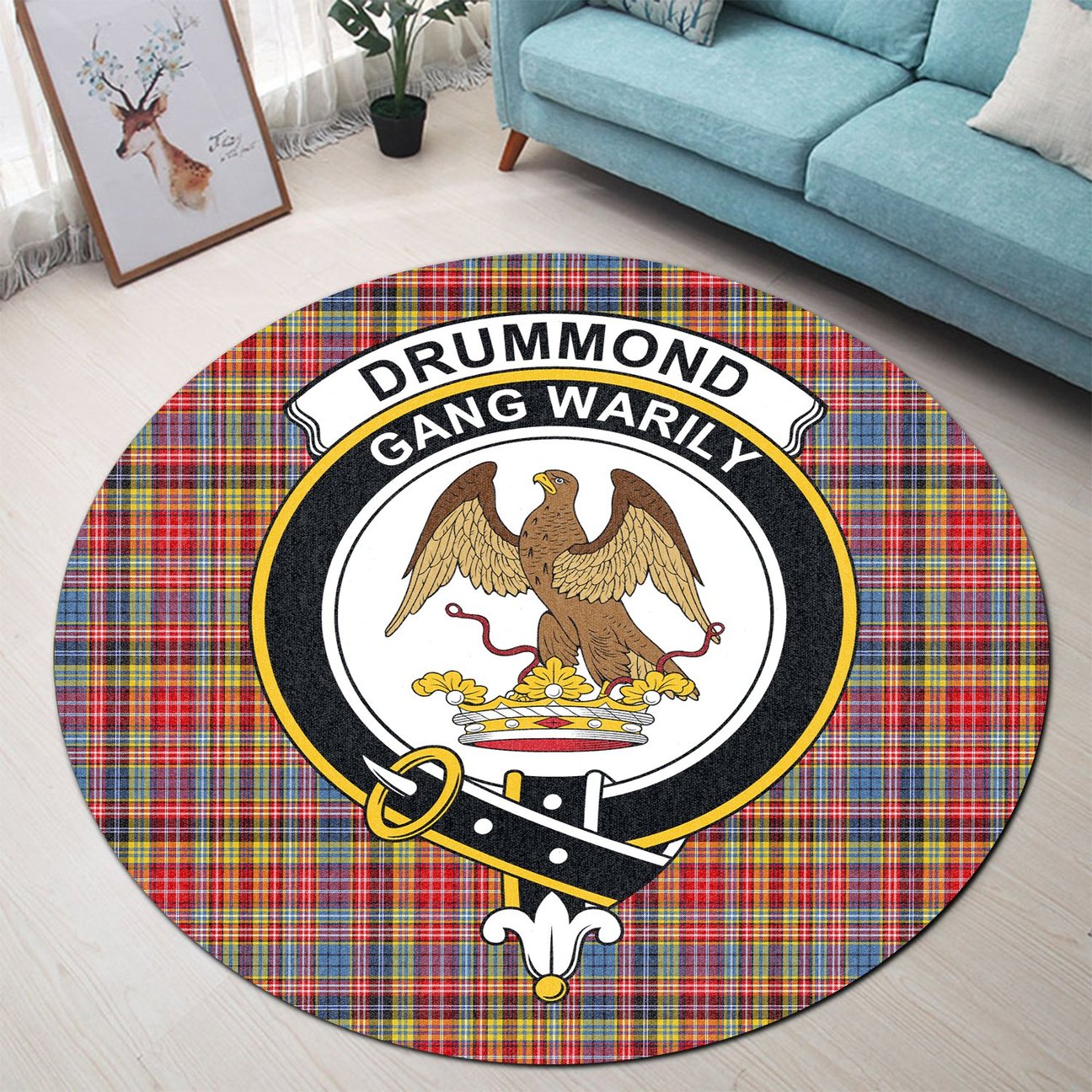 Drummond of Strathallan Tartan Crest Round Rug