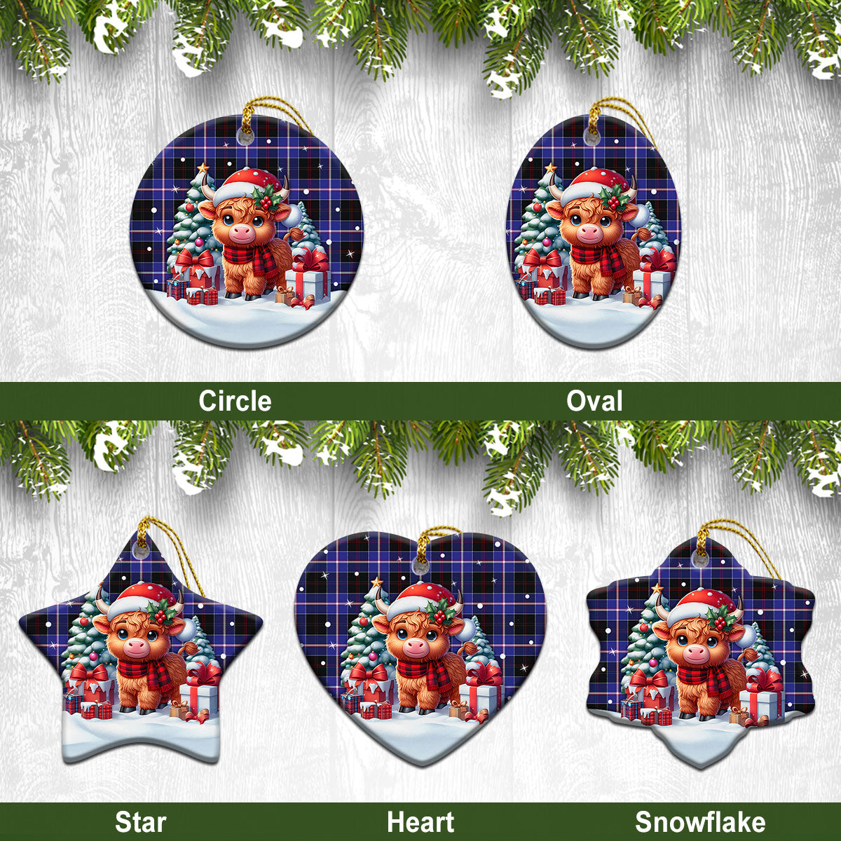 Dunlop Modern Tartan Christmas Ceramic Ornament - Highland Cow Winter Style