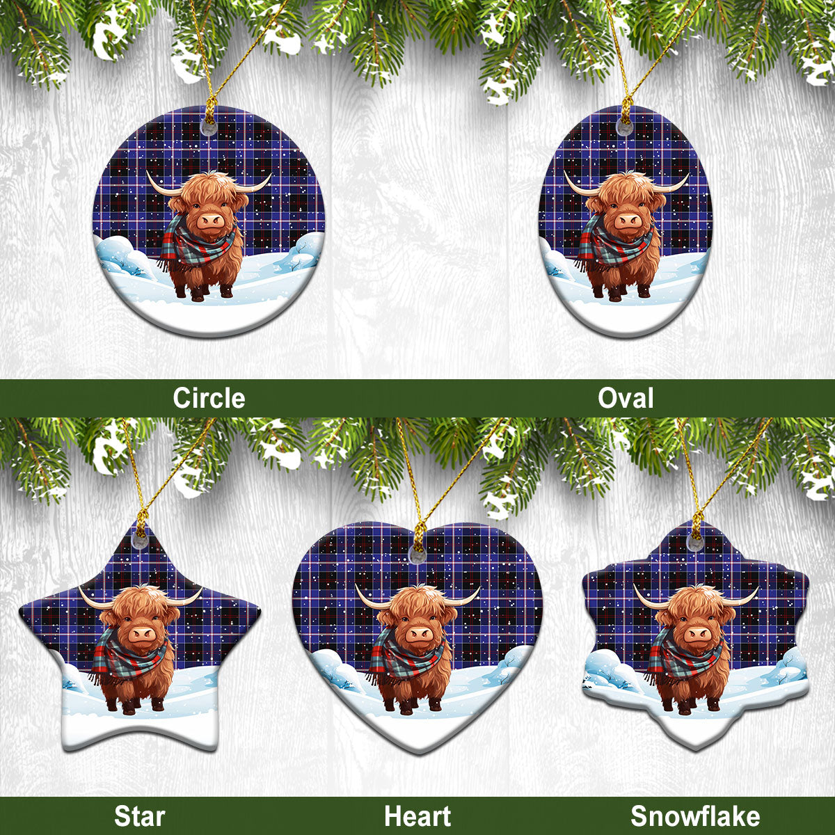 Dunlop Modern Tartan Christmas Ceramic Ornament - Highland Cows Snow Style