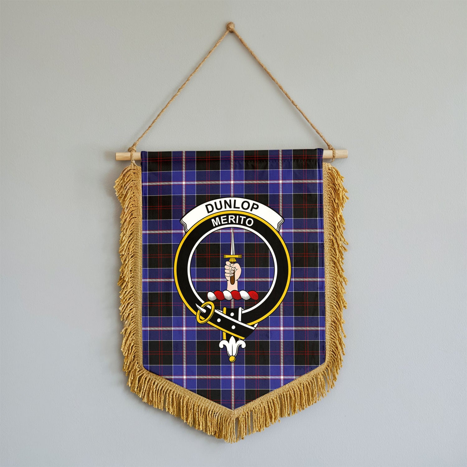 Dunlop Modern Tartan Crest Wall Hanging Banner - Wood Pole