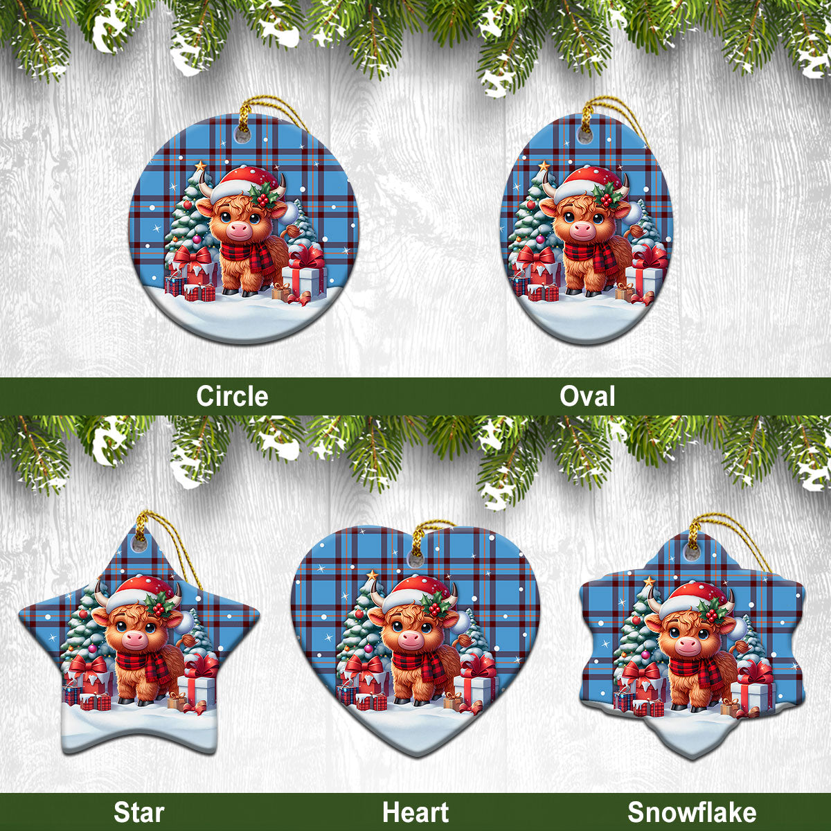 Elliot Ancient Tartan Christmas Ceramic Ornament - Highland Cow Winter Style