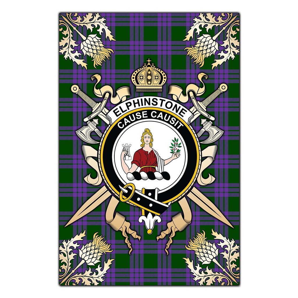 Elphinstone Tartan Crest Black Garden Flag - Gold Thistle Style