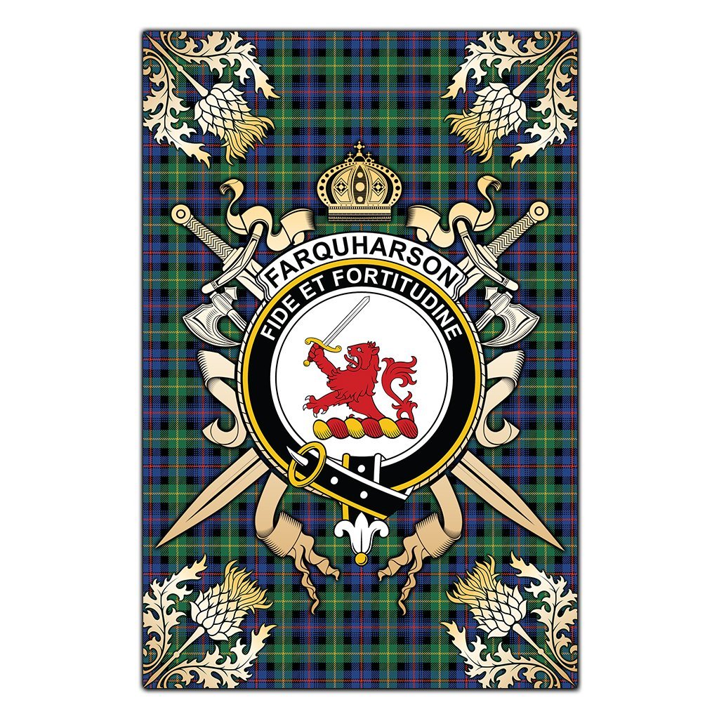Farquharson Ancient Tartan Crest Black Garden Flag - Gold Thistle Style