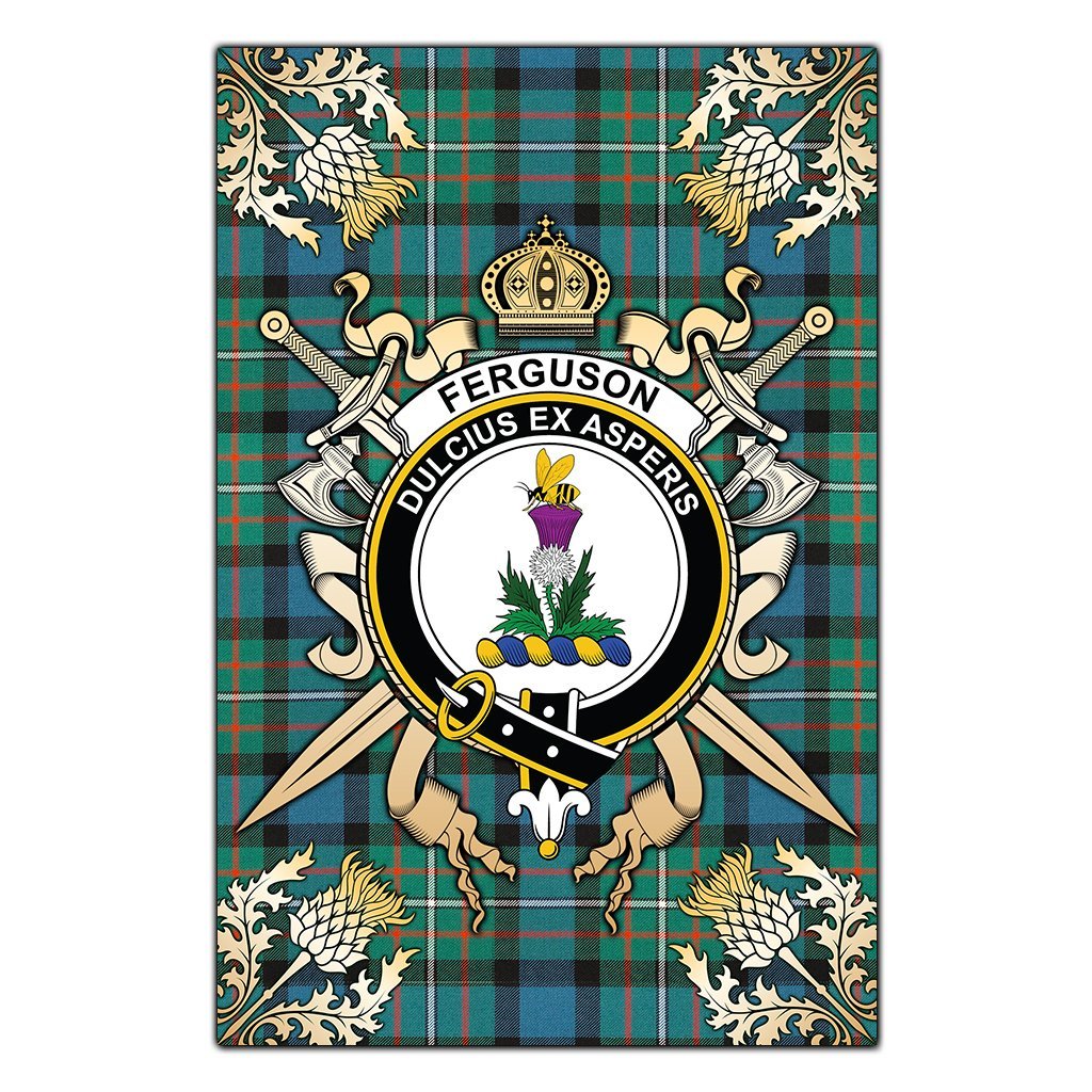 Ferguson Ancient Tartan Crest Black Garden Flag - Gold Thistle Style
