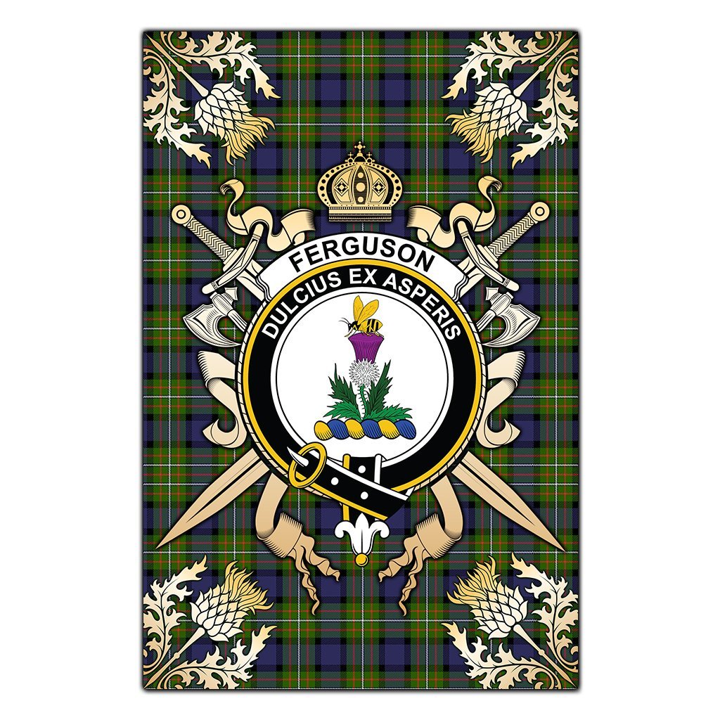 Ferguson Modern Tartan Crest Black Garden Flag - Gold Thistle Style