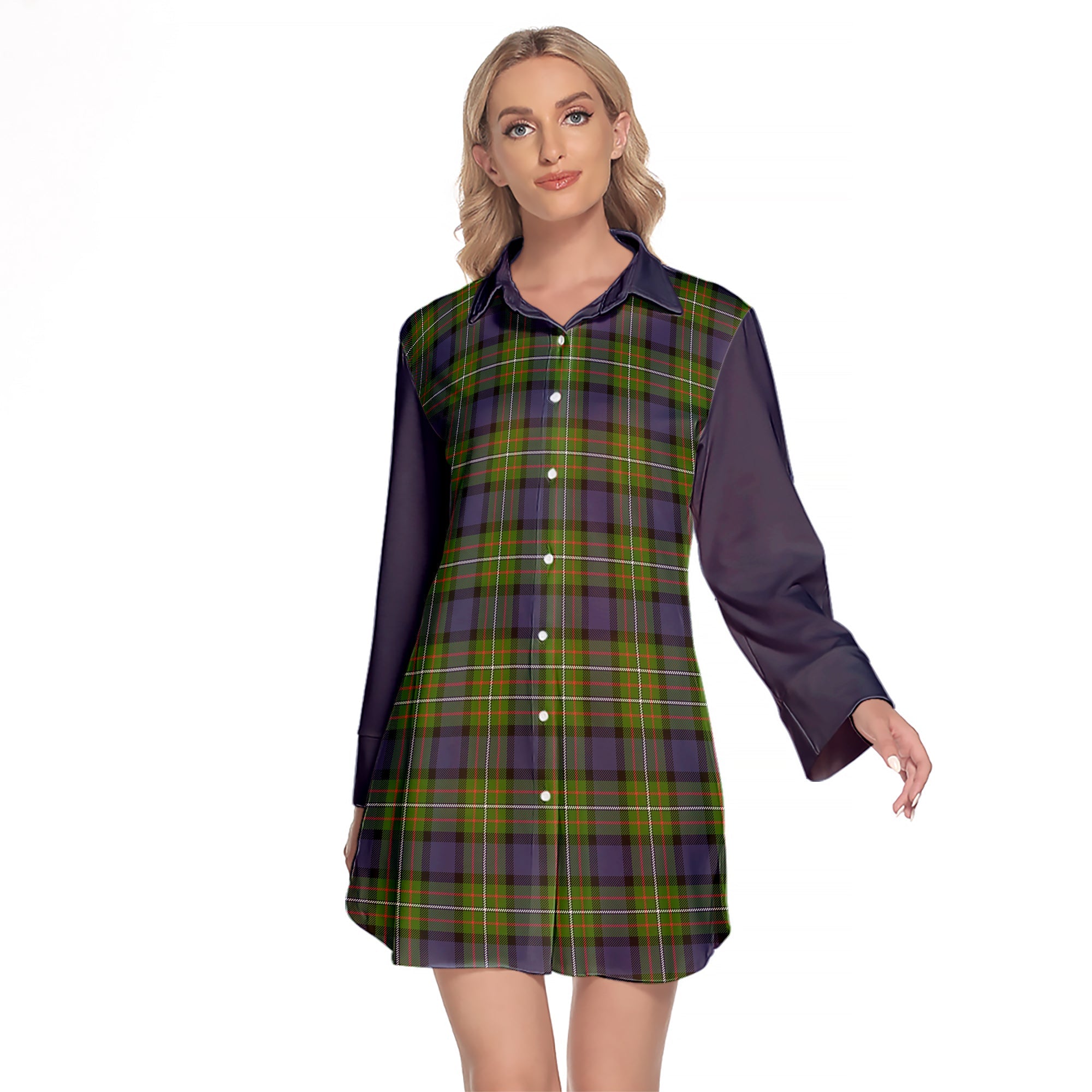 Ferguson Modern Tartan Women's Lapel Shirt Dress With Long Sleeve