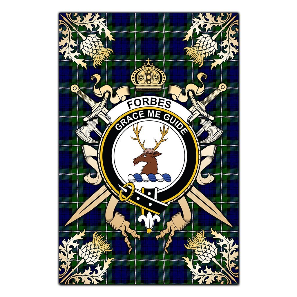 Forbes Modern Tartan Crest Black Garden Flag - Gold Thistle Style