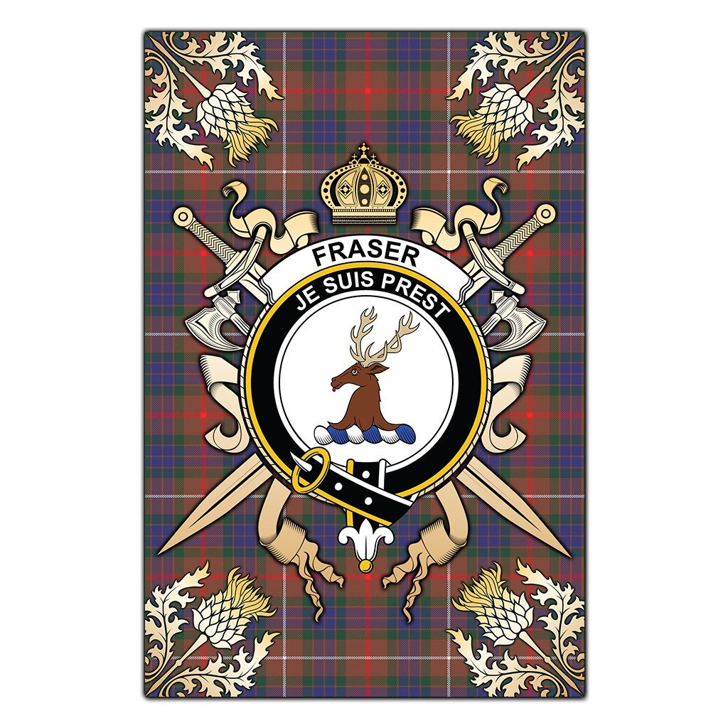 Fraser Hunting Modern Tartan Crest Black Garden Flag - Gold Thistle Style