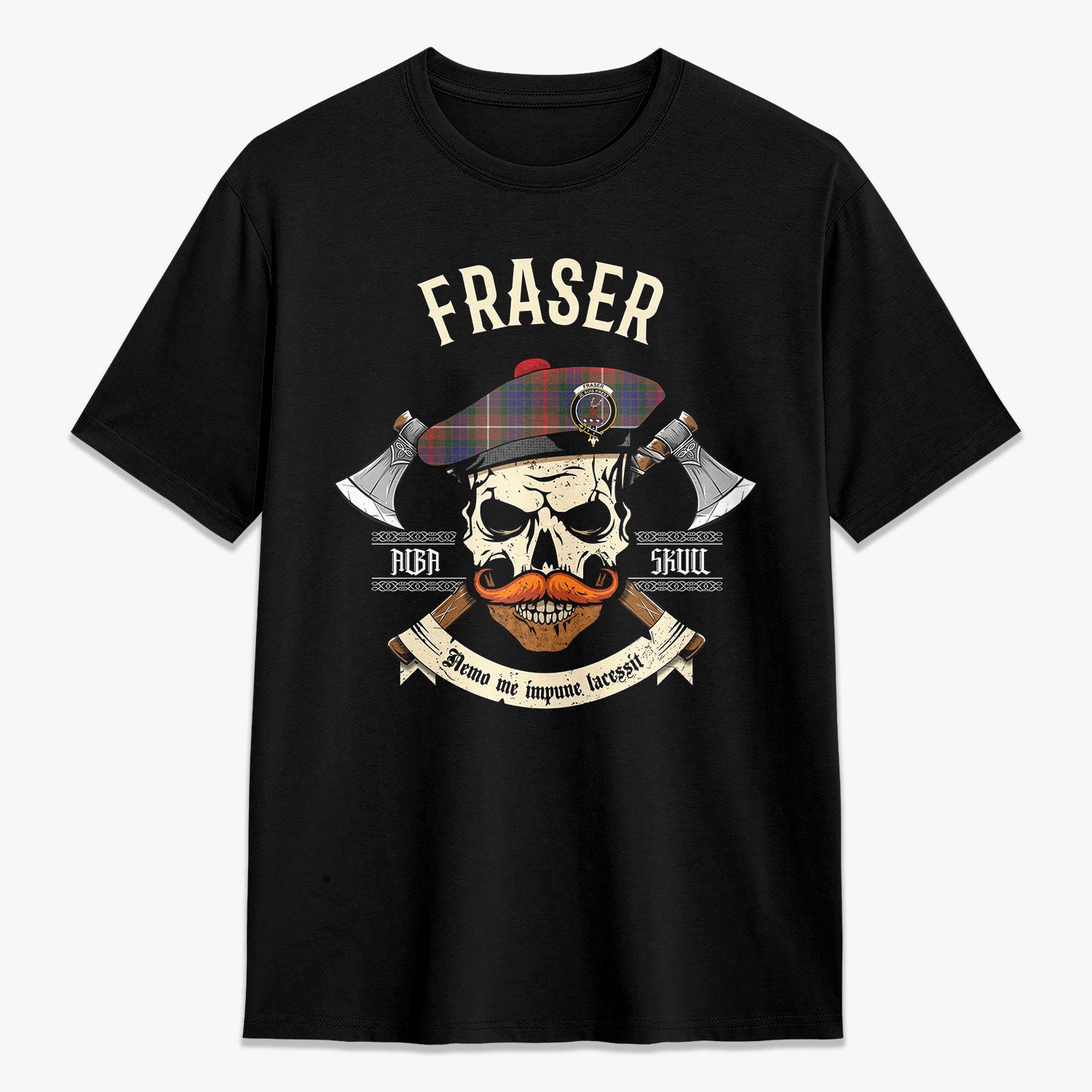 Fraser (of Lovat) Hunting Modern Tartan Crest 2D T-shirt - Alba Skull Style,