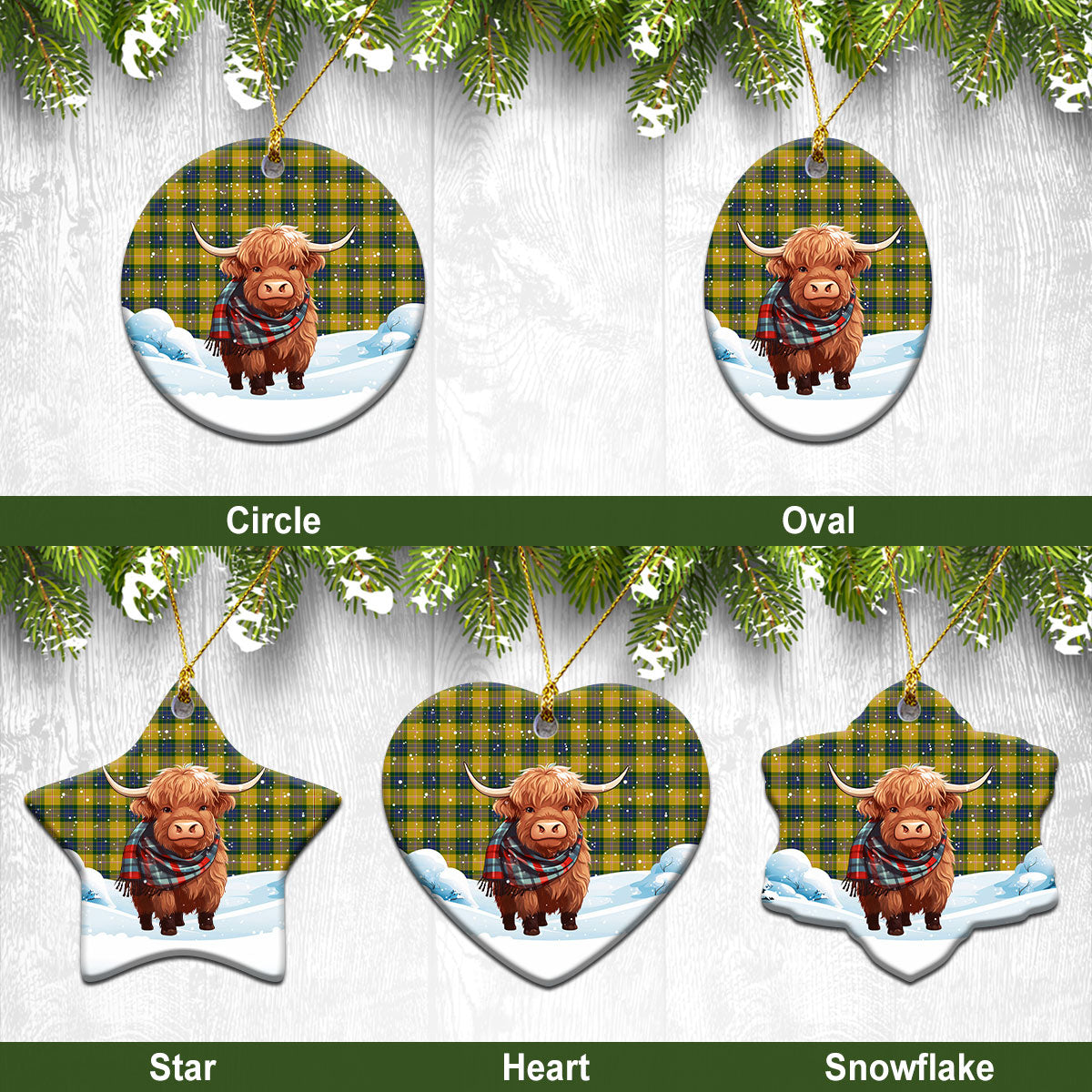 Fraser (of Lovat) Yellow Tartan Christmas Ceramic Ornament - Highland Cows Snow Style