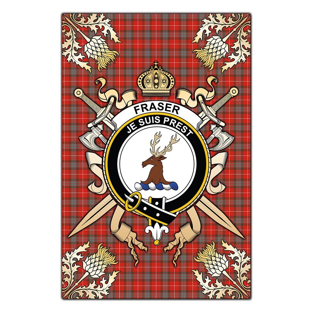 Fraser Weathered Tartan Crest Black Garden Flag - Gold Thistle Style