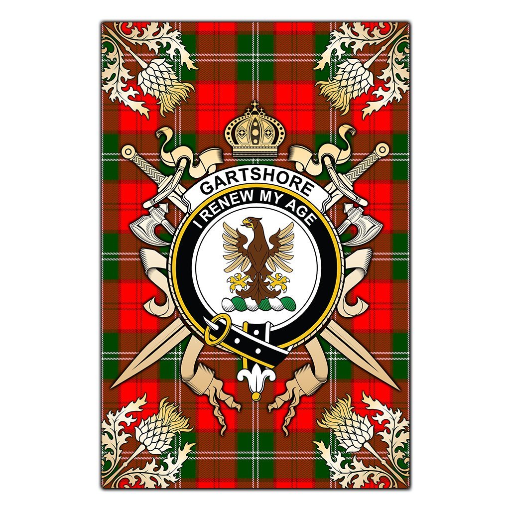 Gartshore Tartan Crest Black Garden Flag - Gold Thistle Style