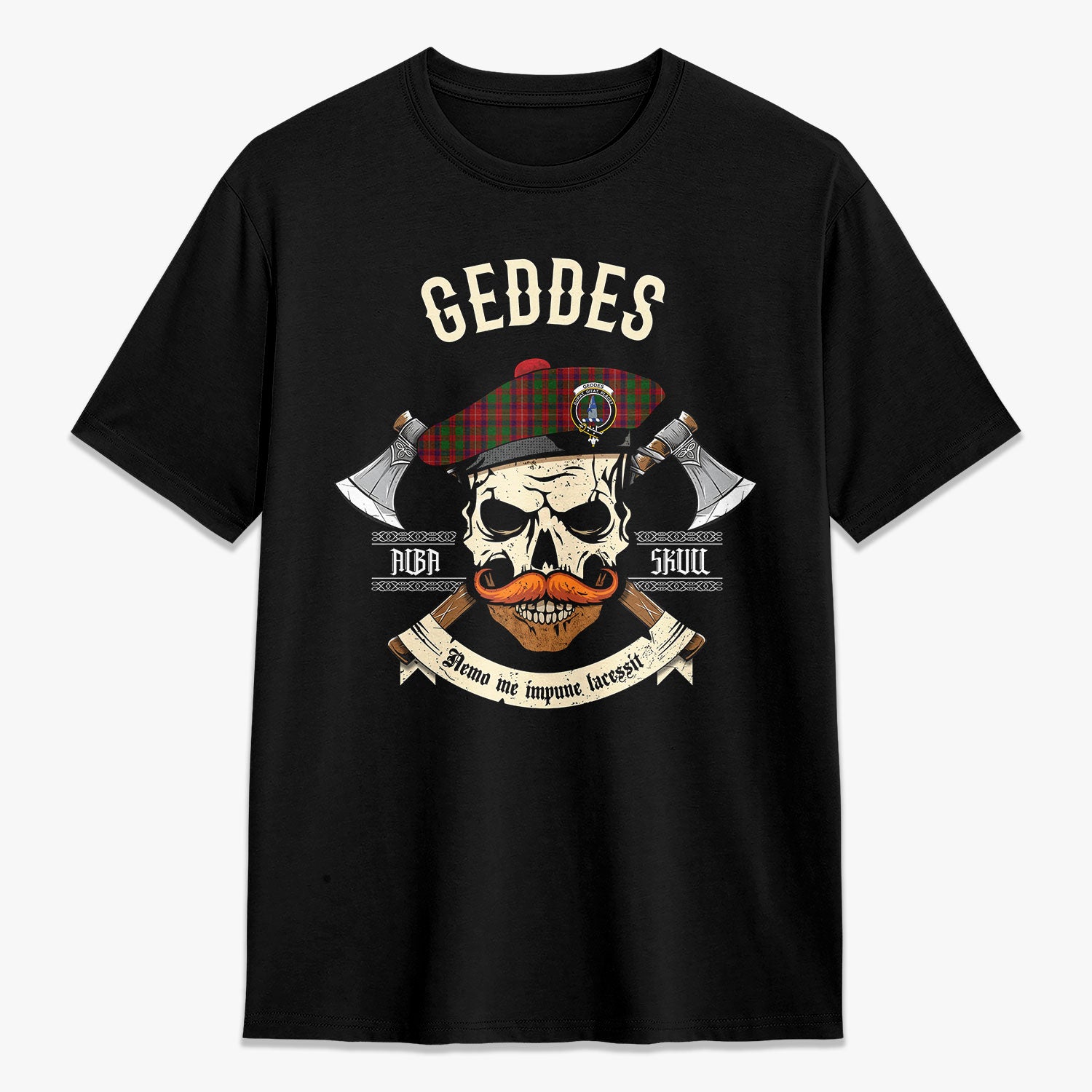 Geddes Tartan Crest 2D T-shirt - Alba Skull Style,