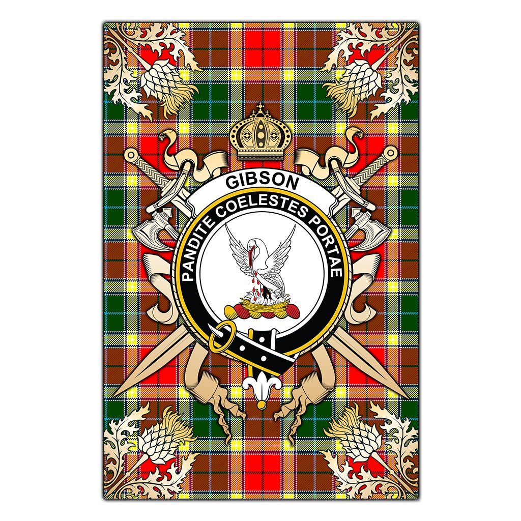 Gibson Tartan Crest Black Garden Flag - Gold Thistle Style
