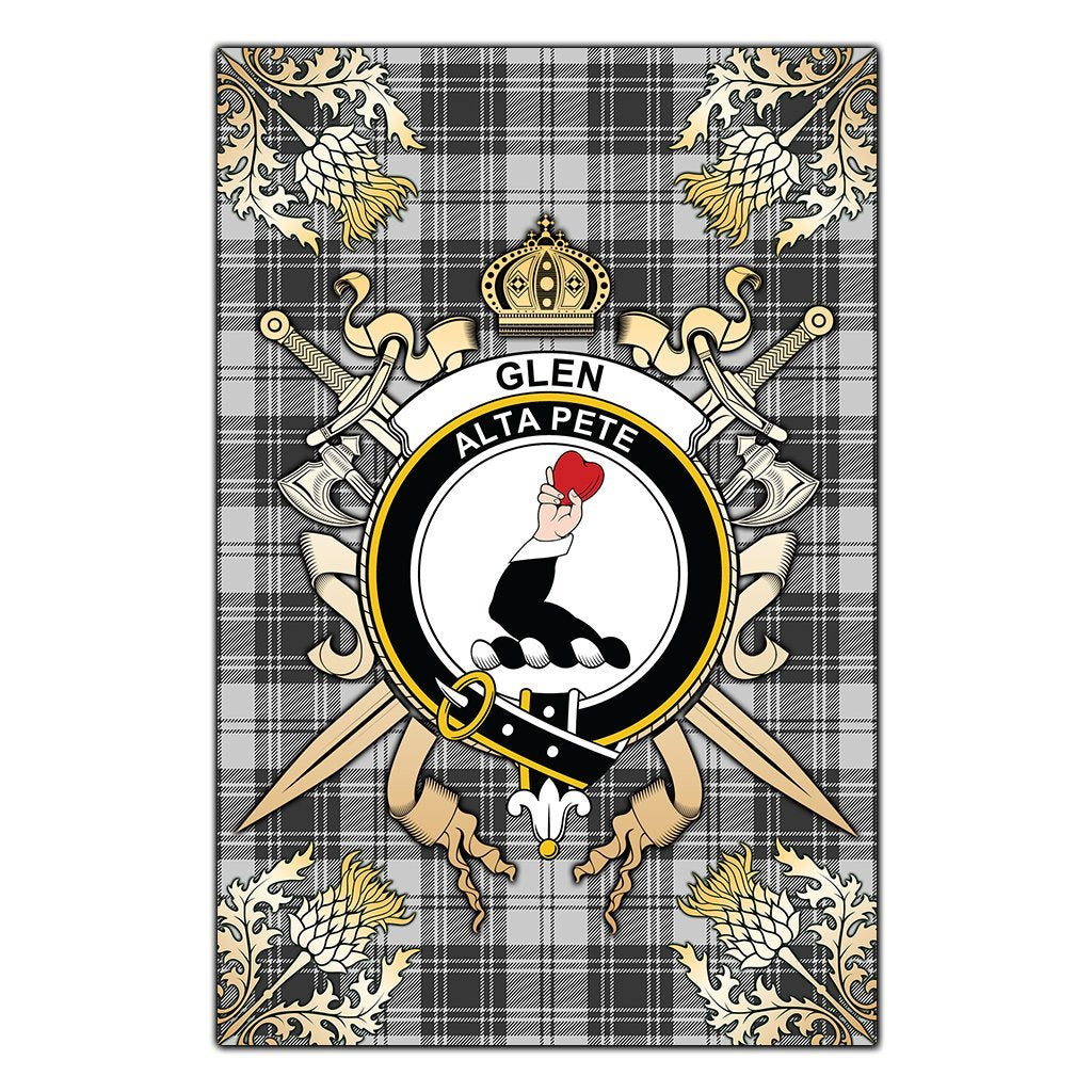 Glen Tartan Crest Black Garden Flag - Gold Thistle Style