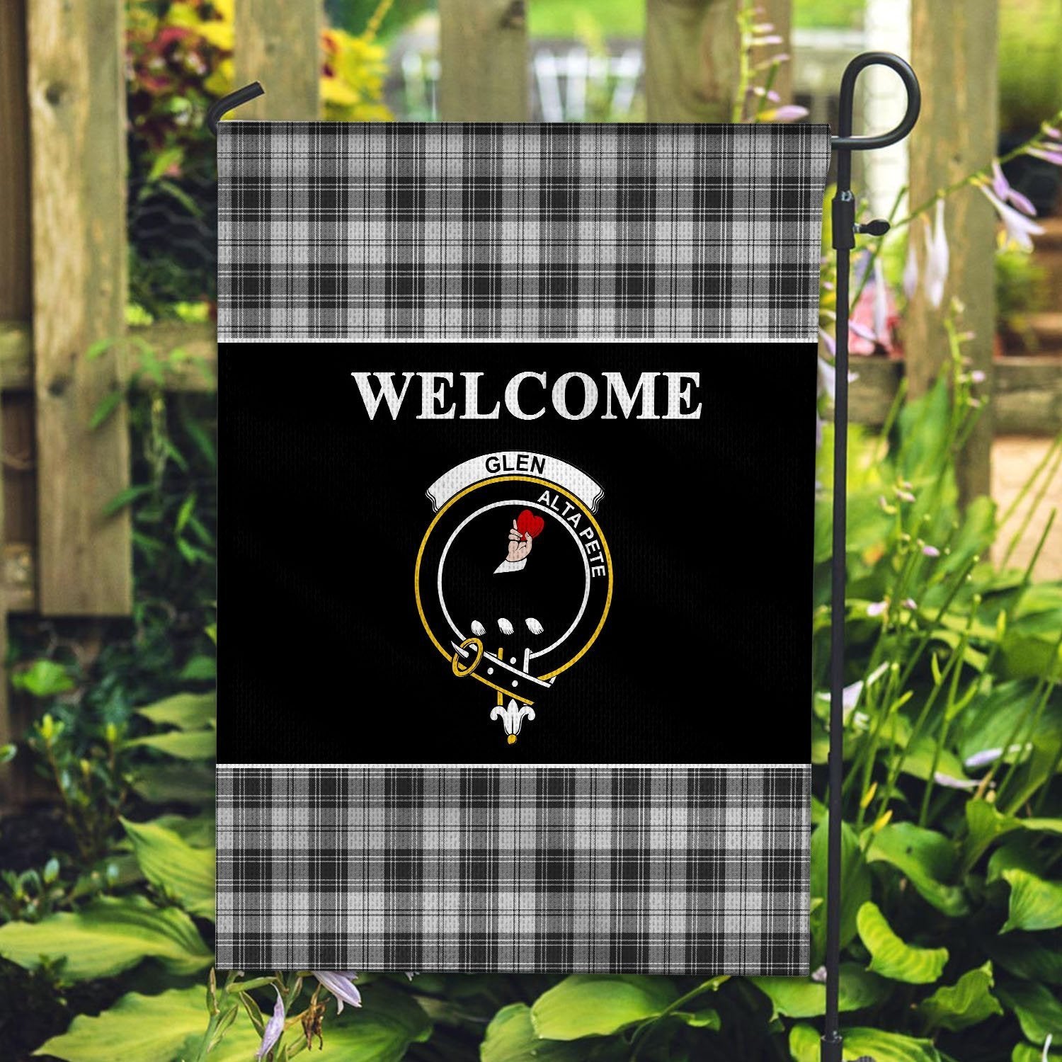 Glen Tartan Crest Black Garden Flag