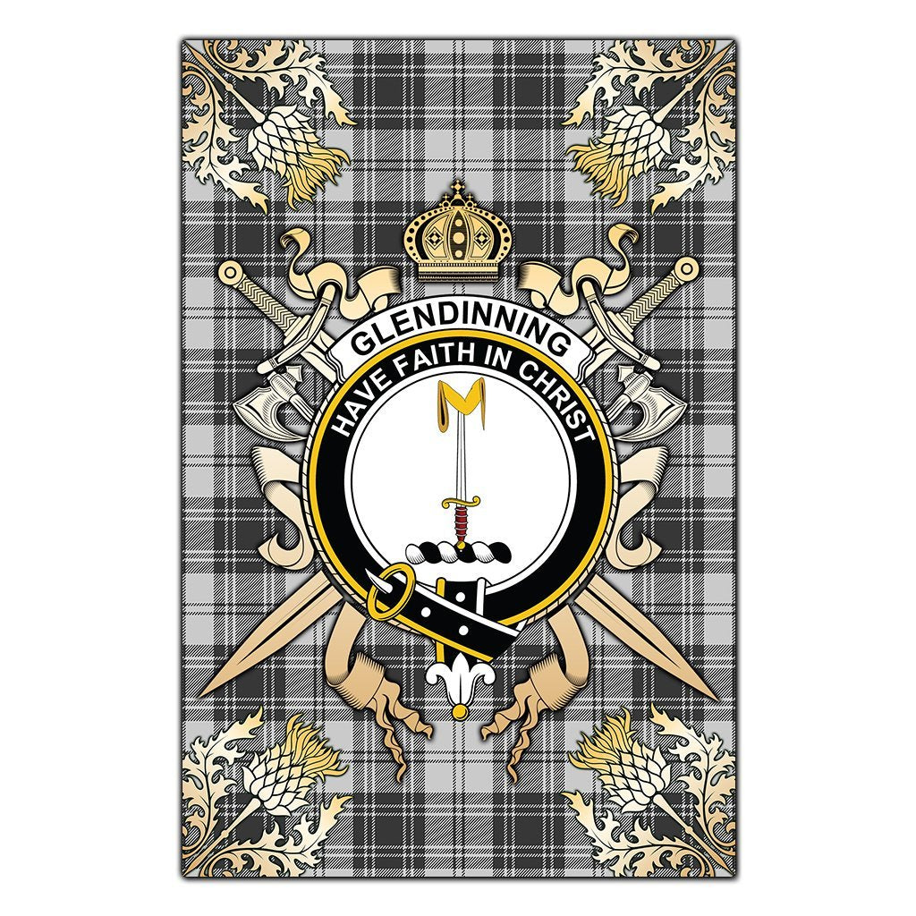 Glendinning Tartan Crest Black Garden Flag - Gold Thistle Style
