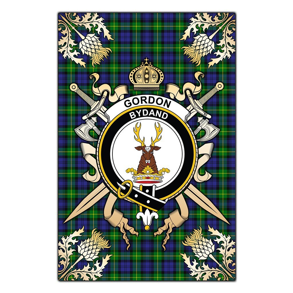 Gordon Modern Tartan Crest Black Garden Flag - Gold Thistle Style