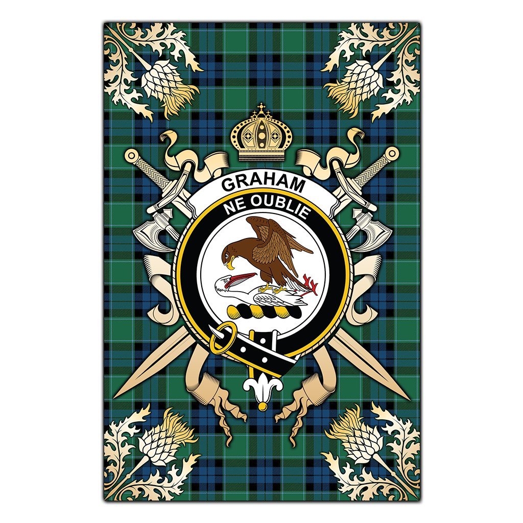 Graham of Menteith Ancient Tartan Crest Black Garden Flag - Gold Thistle Style