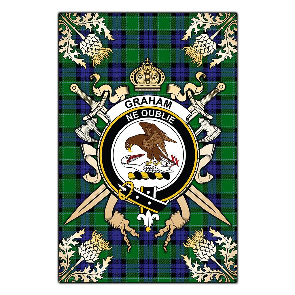 Graham of Menteith Modern Tartan Crest Black Garden Flag - Gold Thistle Style