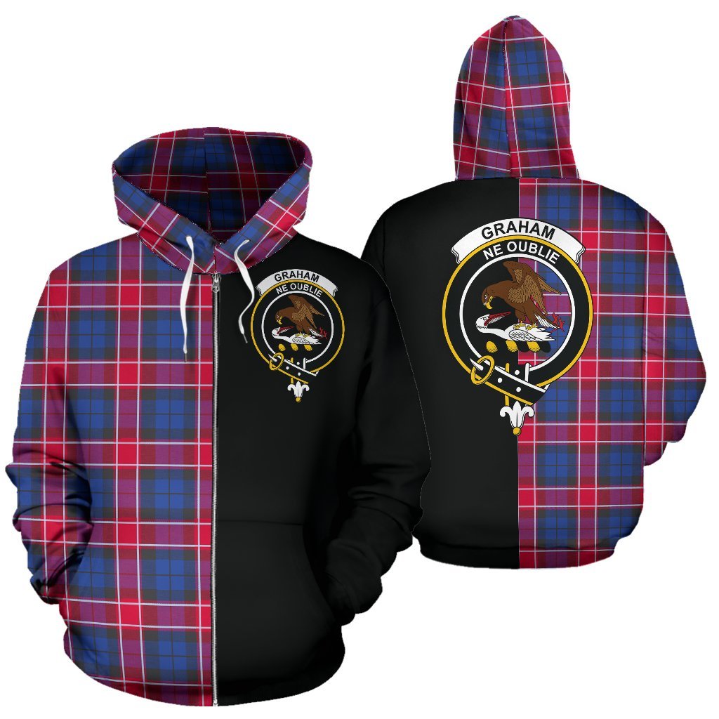 Graham of Menteith Red Tartan Crest Zipper Hoodie - Half Of Me Style