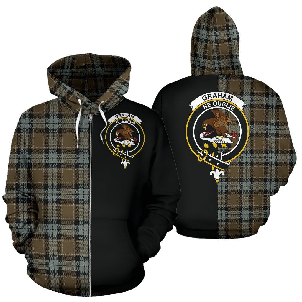Graham of Menteith Weathered Tartan Crest Zipper Hoodie - Half Of Me Style