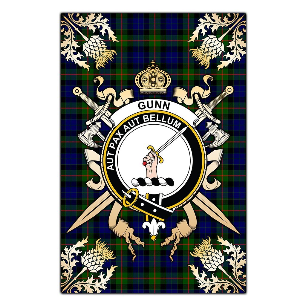 Gunn Modern Tartan Crest Black Garden Flag - Gold Thistle Style