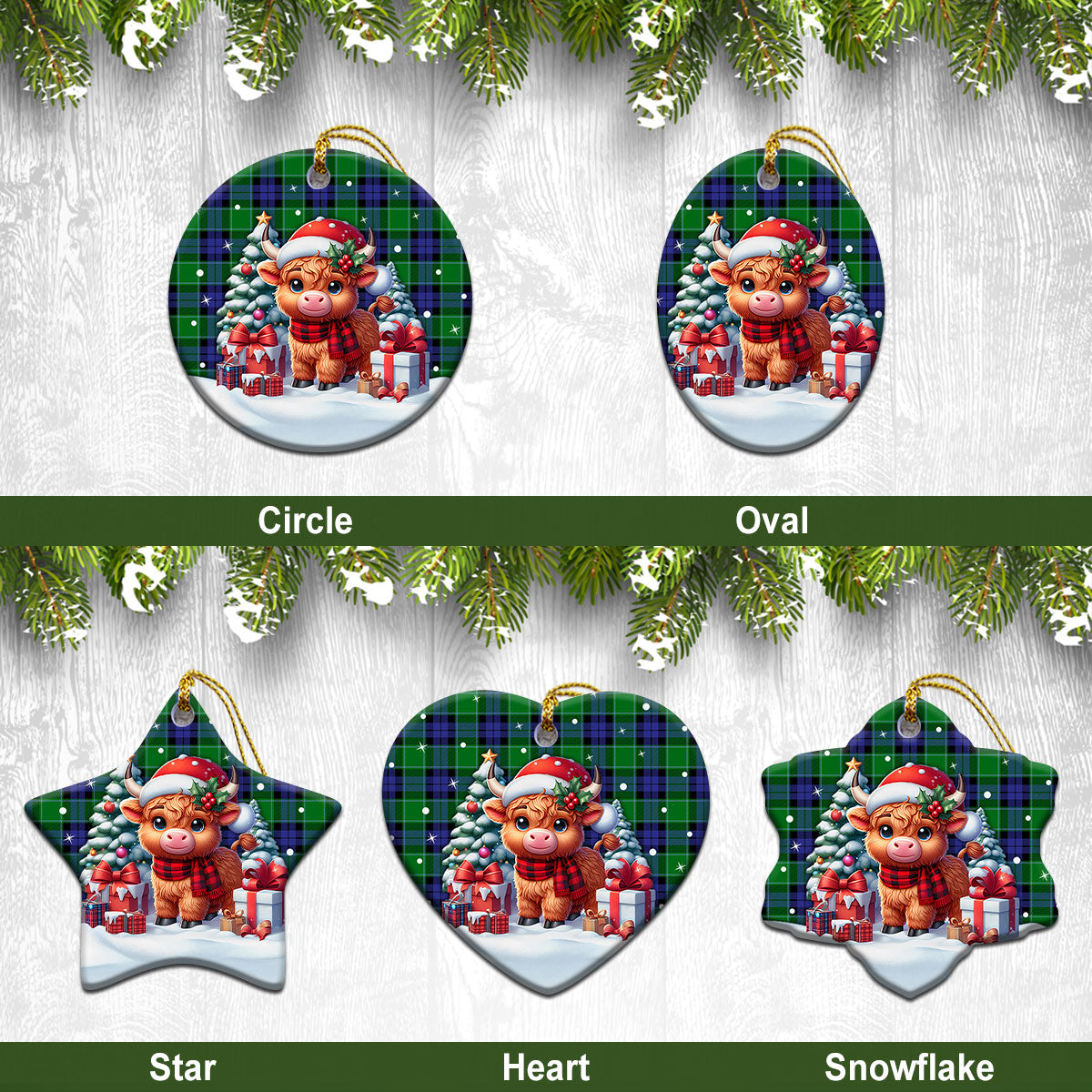 Haldane Tartan Christmas Ceramic Ornament - Highland Cow Winter Style