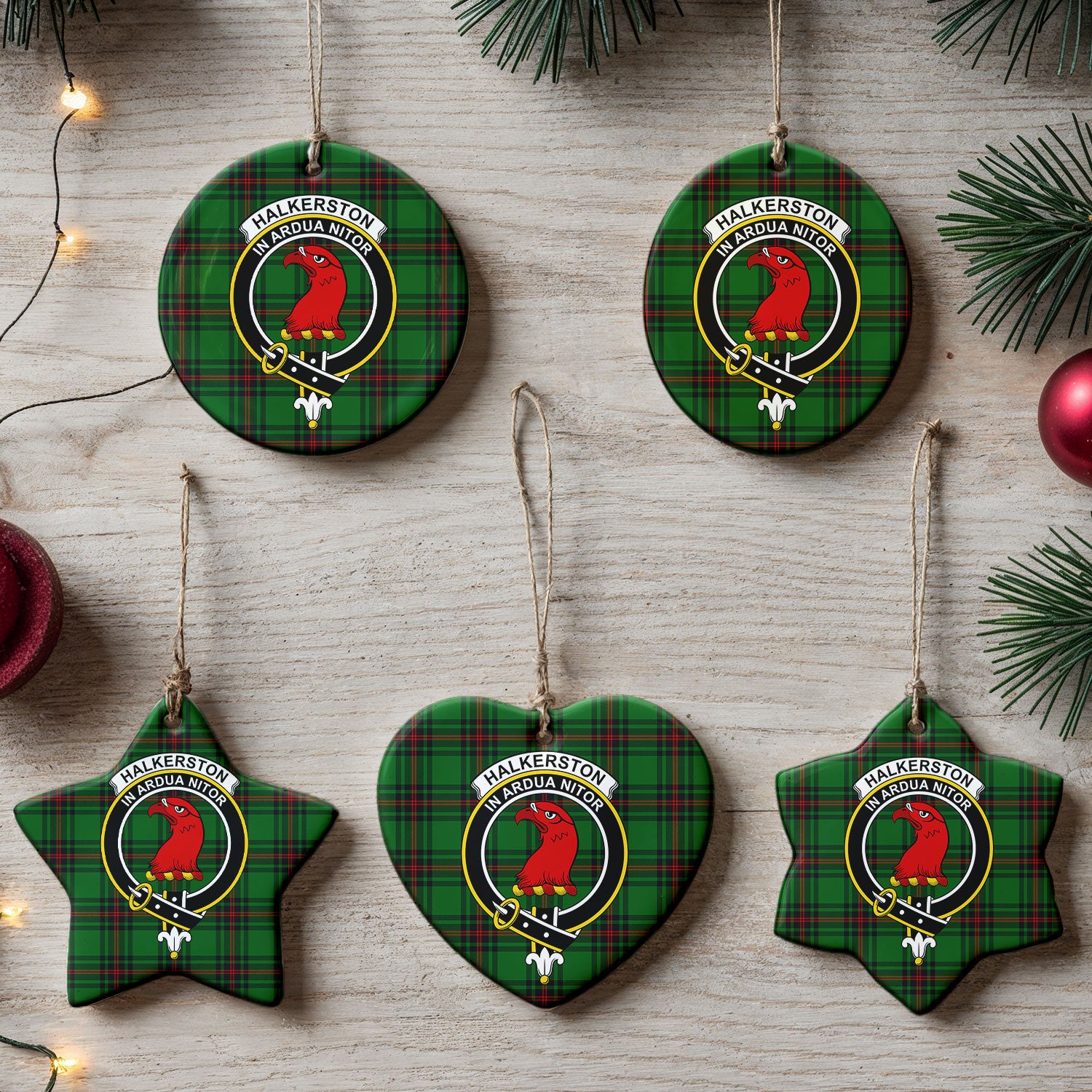 Halkerston Tartan Crest Christmas Ceramic Ornament