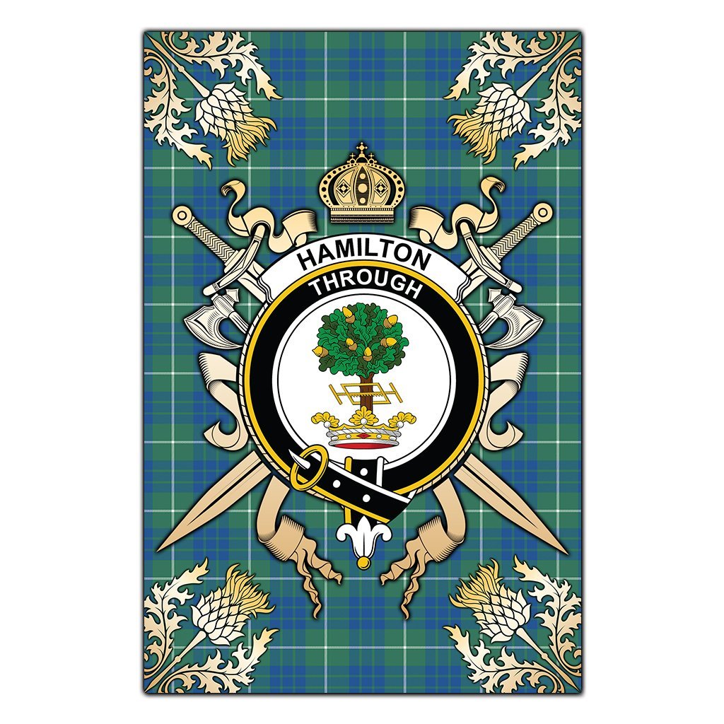 Hamilton Hunting Ancient Tartan Crest Black Garden Flag - Gold Thistle Style