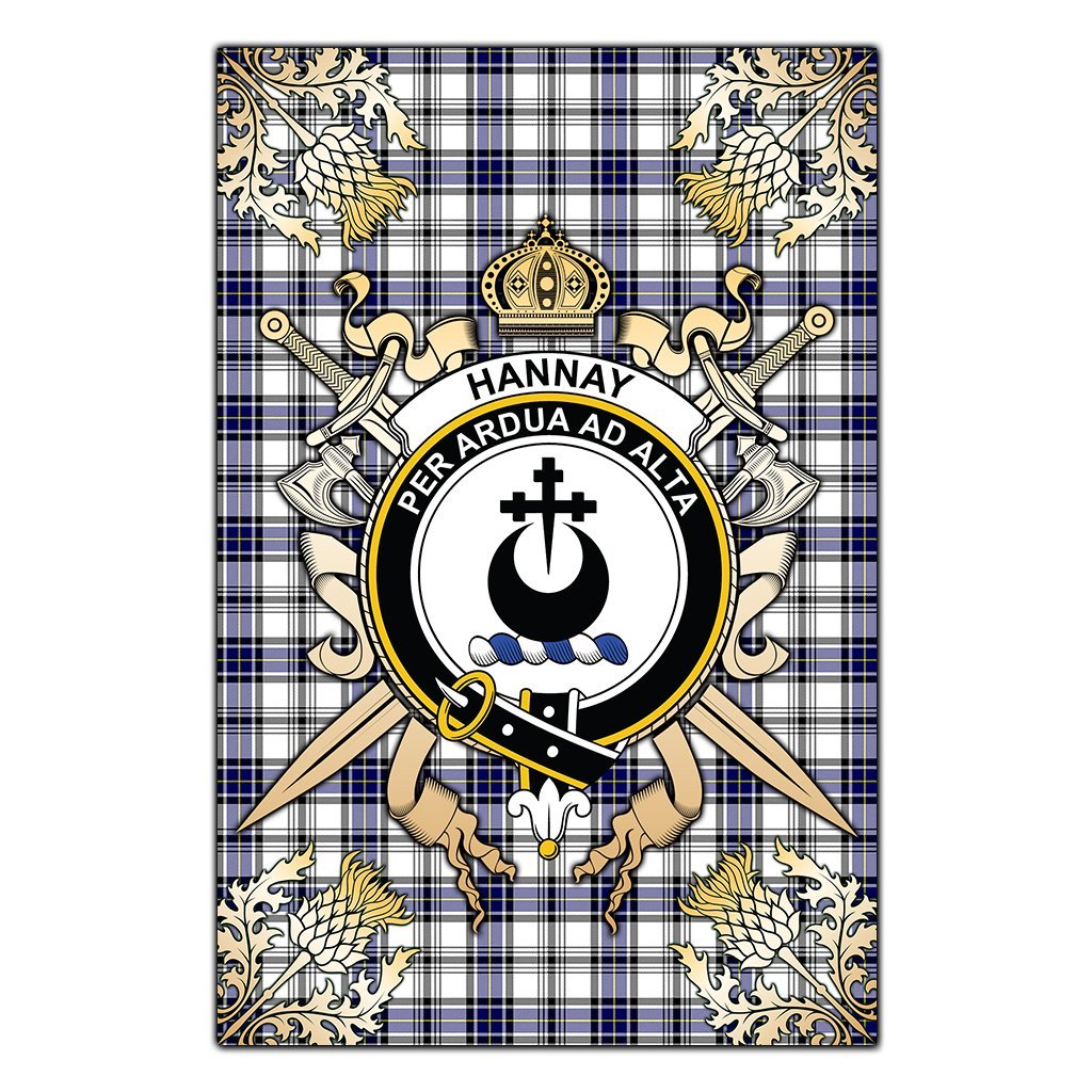 Hannay Modern Tartan Crest Black Garden Flag - Gold Thistle Style