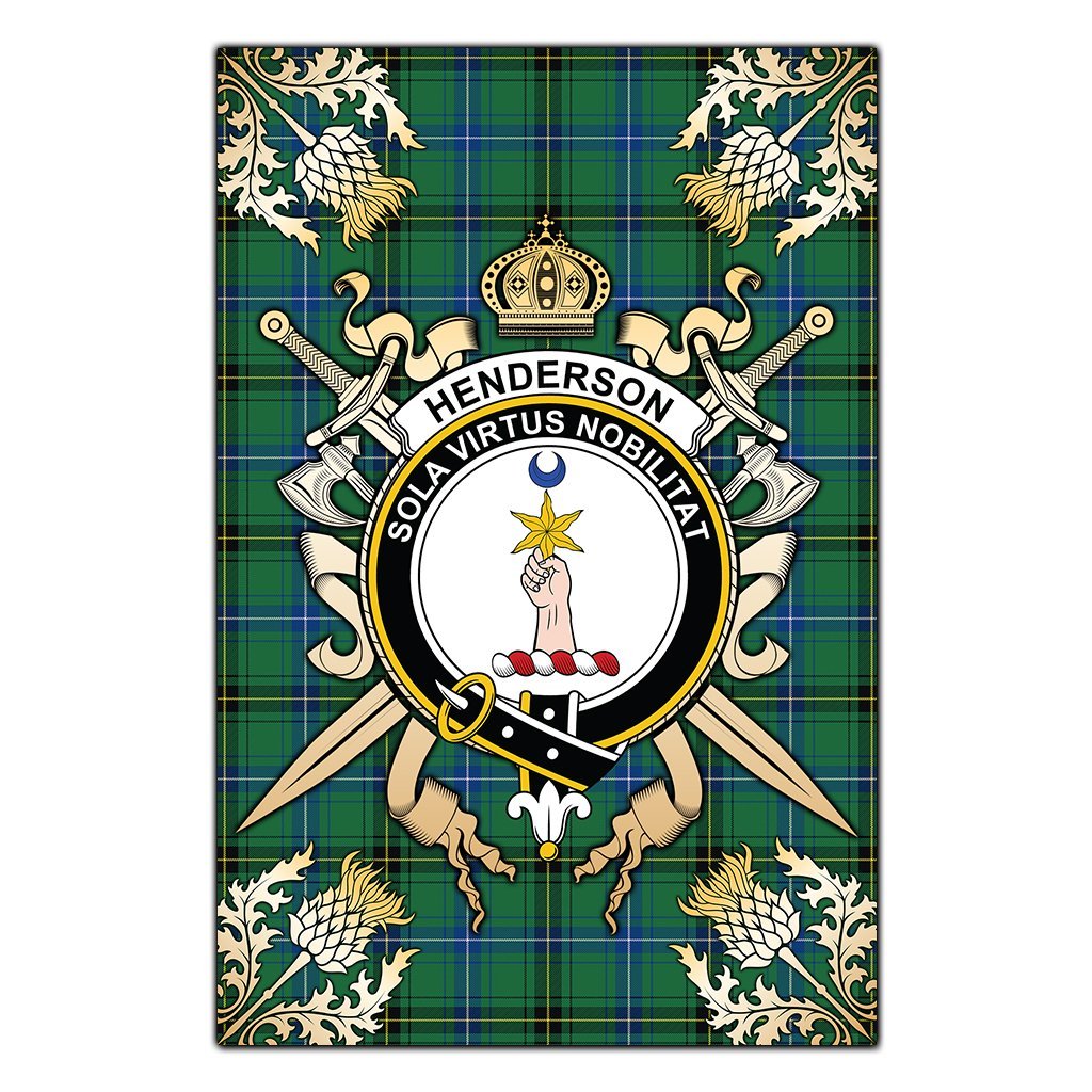 Henderson Ancient Tartan Crest Black Garden Flag - Gold Thistle Style