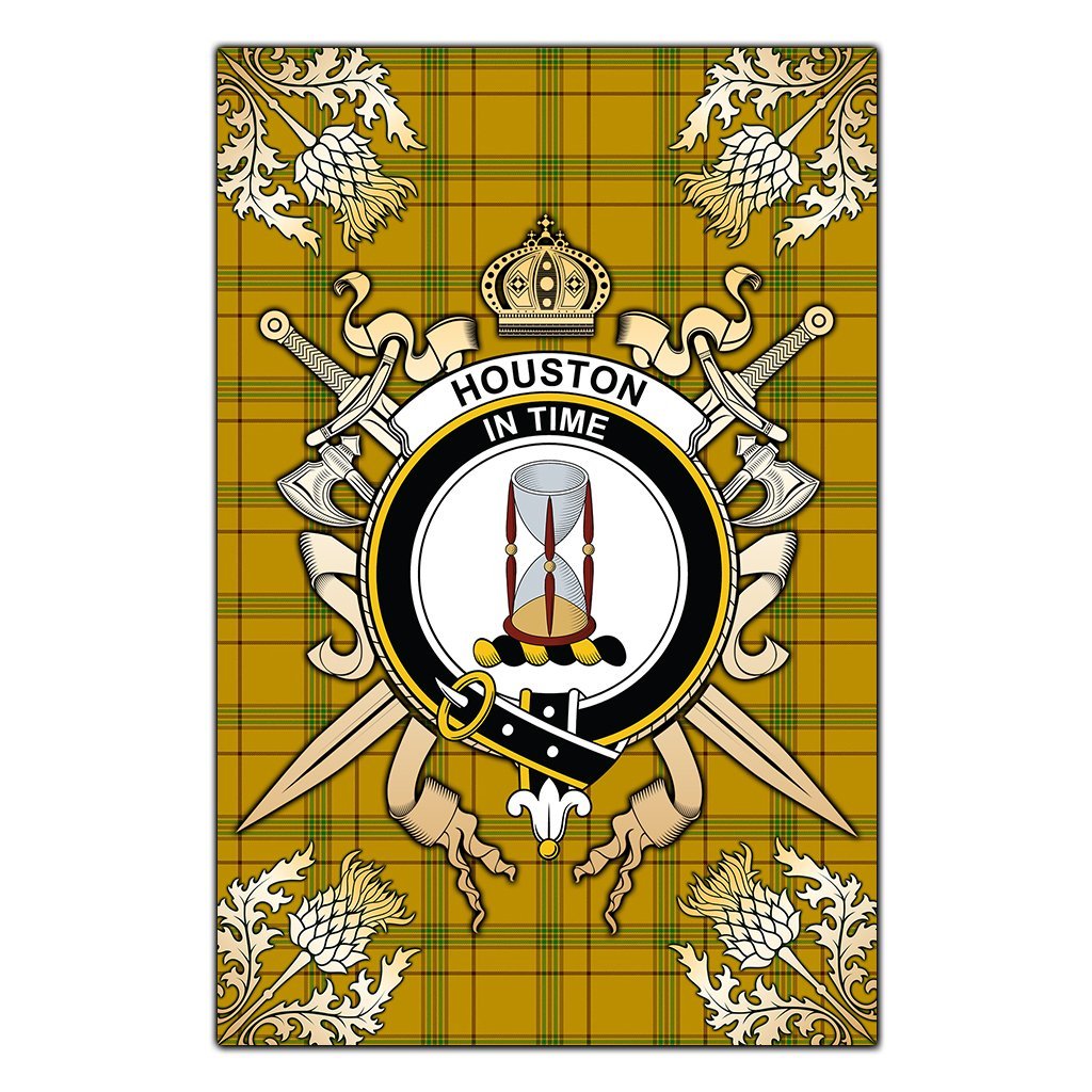 Houston Tartan Crest Black Garden Flag - Gold Thistle Style
