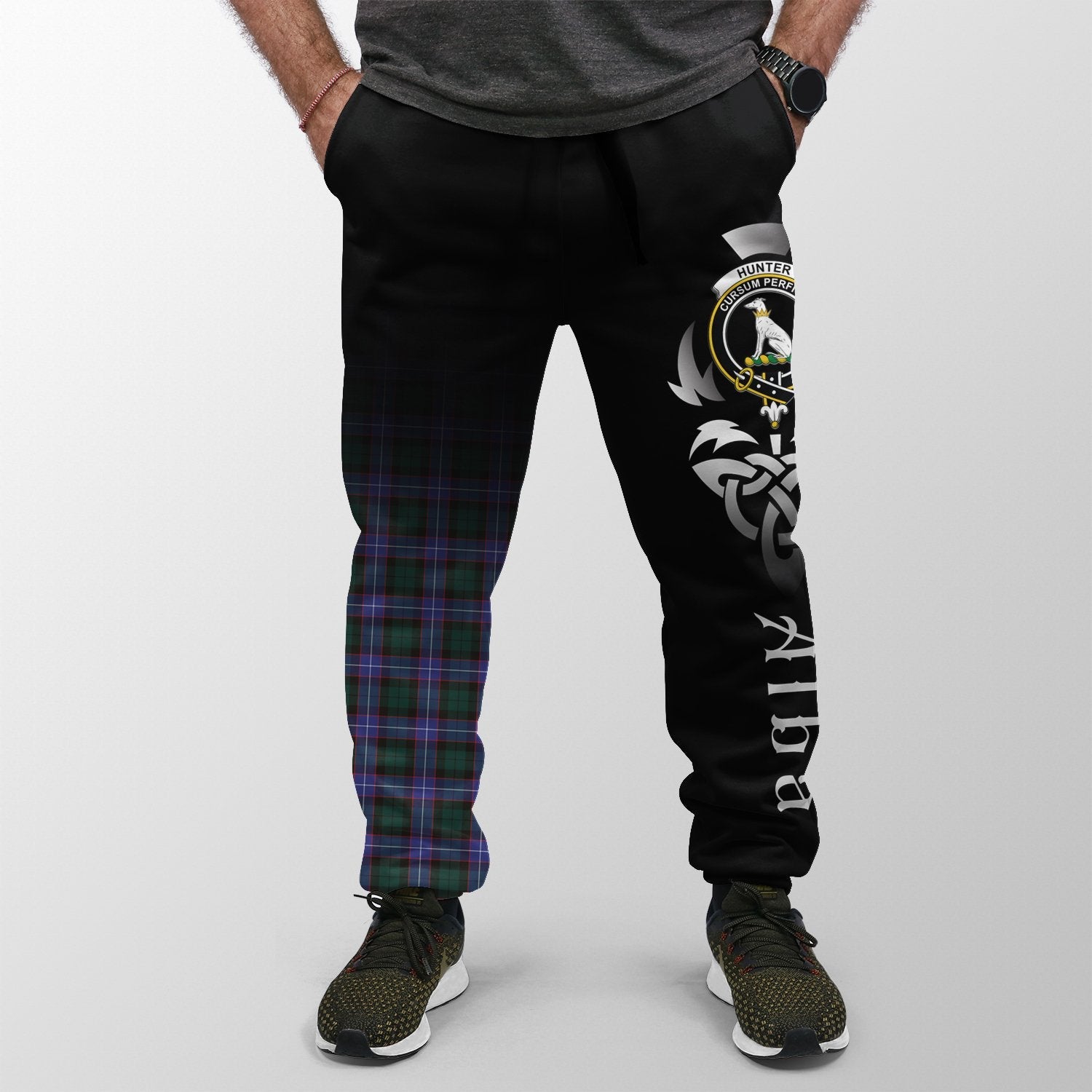Hunter Modern Tartan Crest Jogger Sweatpants - Alba Celtic Style