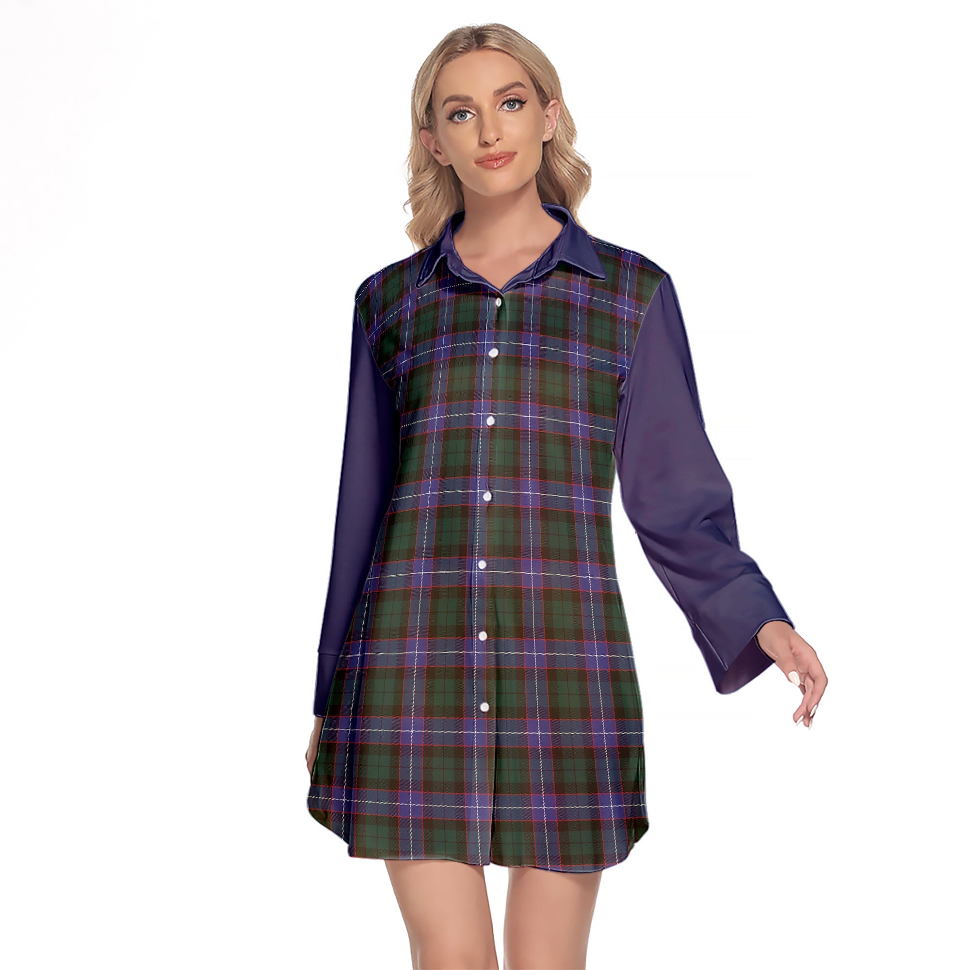 Hunter Modern Tartan Women's Lapel Shirt Dress With Long Sleeve