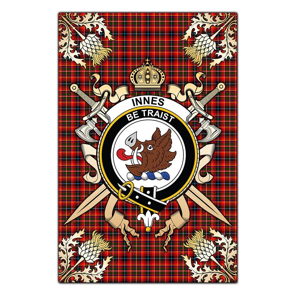 Innes Modern Tartan Crest Black Garden Flag - Gold Thistle Style