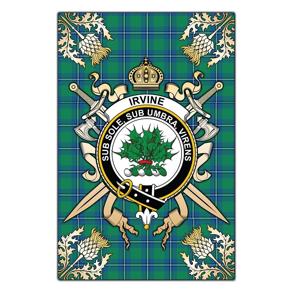 Irvine Ancient Tartan Crest Black Garden Flag - Gold Thistle Style