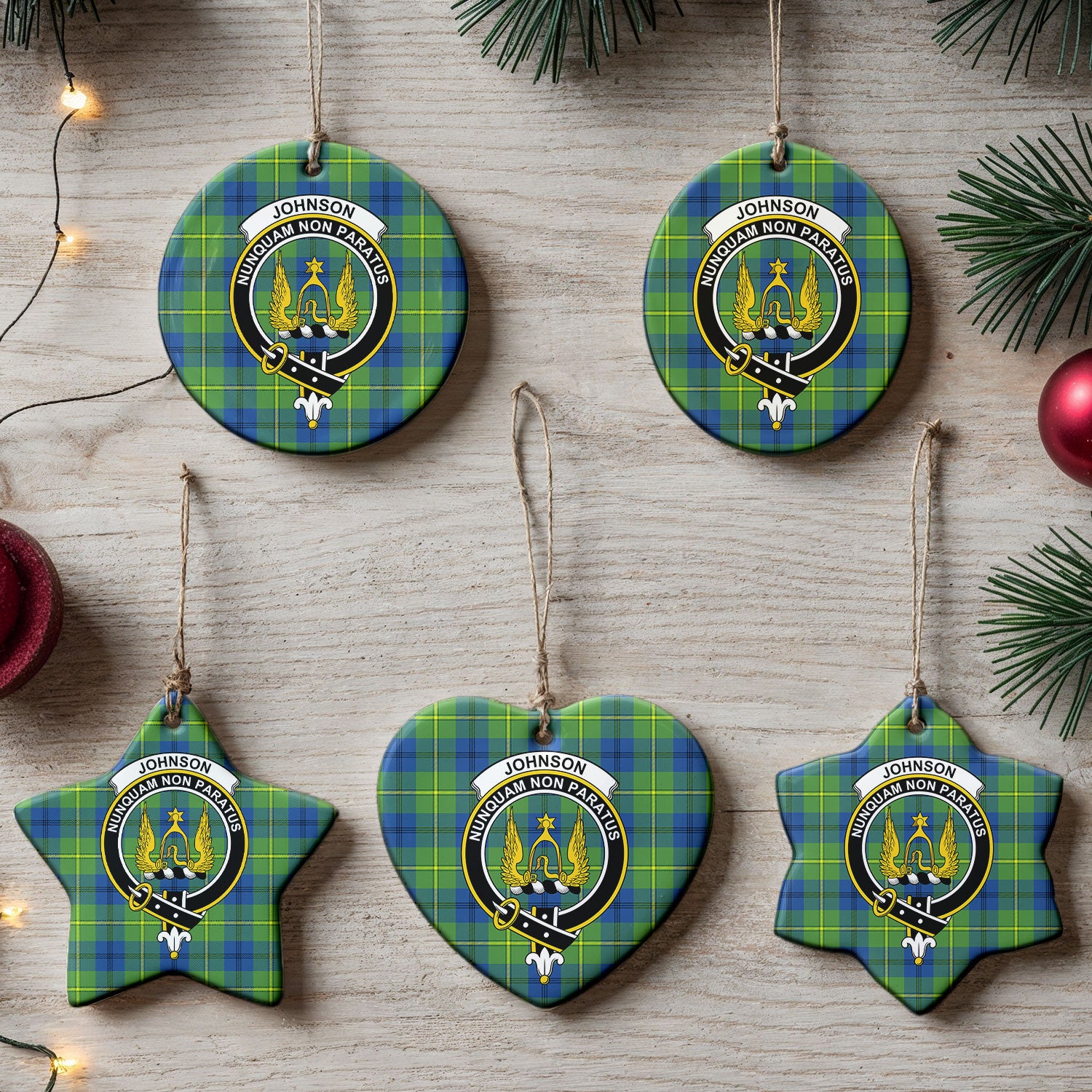 Johnson Ancient Tartan Crest Christmas Ceramic Ornament