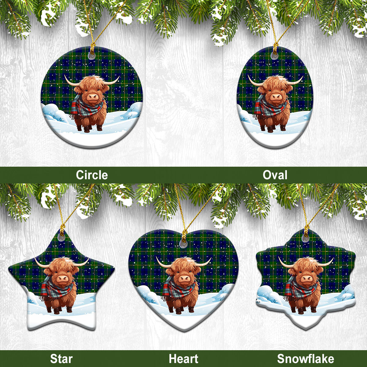 Johnston Modern Tartan Christmas Ceramic Ornament - Highland Cows Snow Style