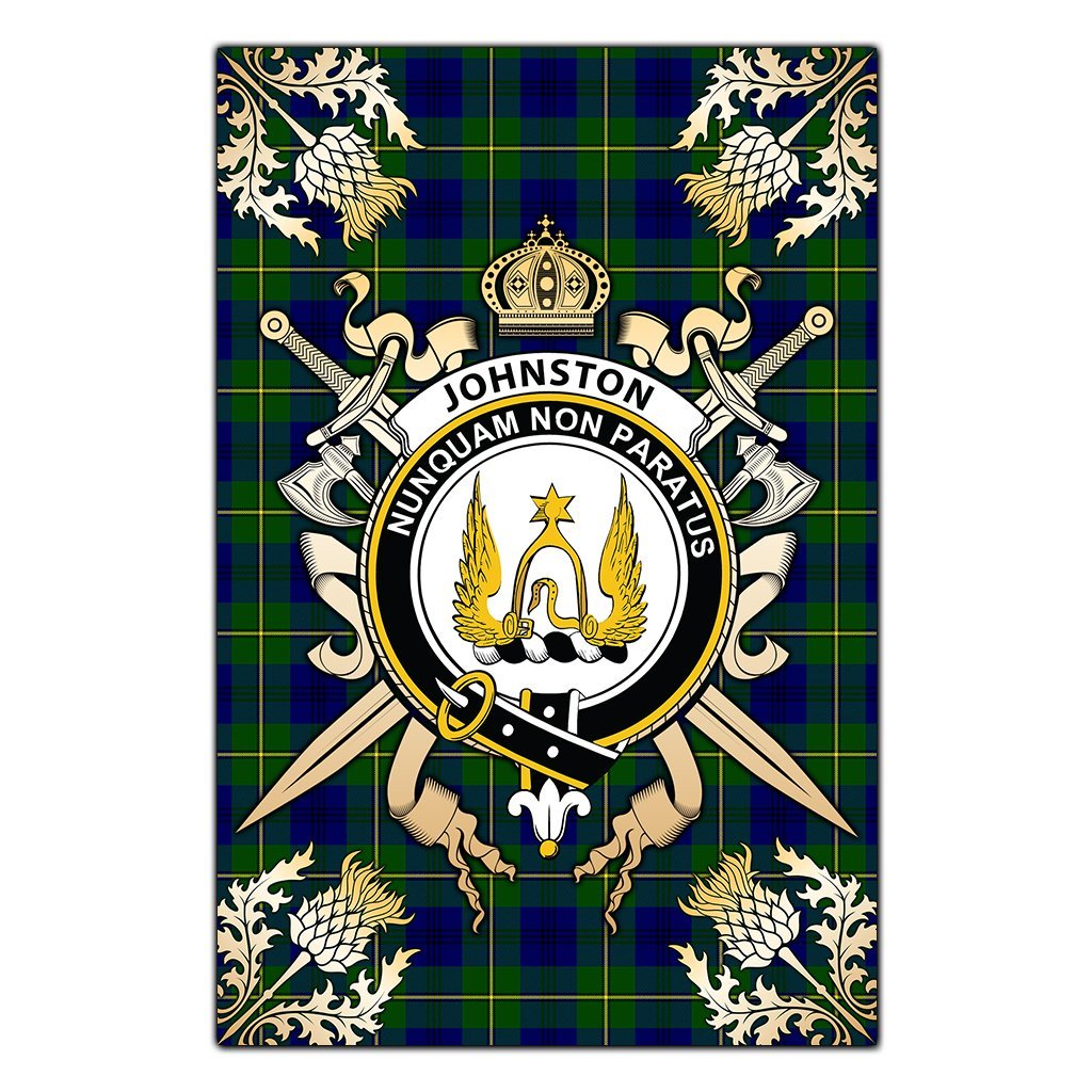 Johnston Modern Tartan Crest Black Garden Flag - Gold Thistle Style