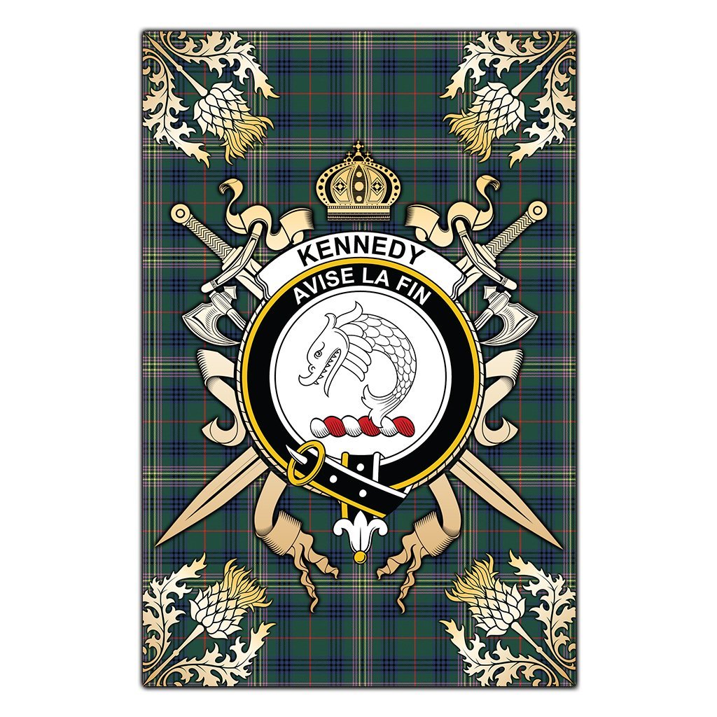 Kennedy Modern Tartan Crest Black Garden Flag - Gold Thistle Style