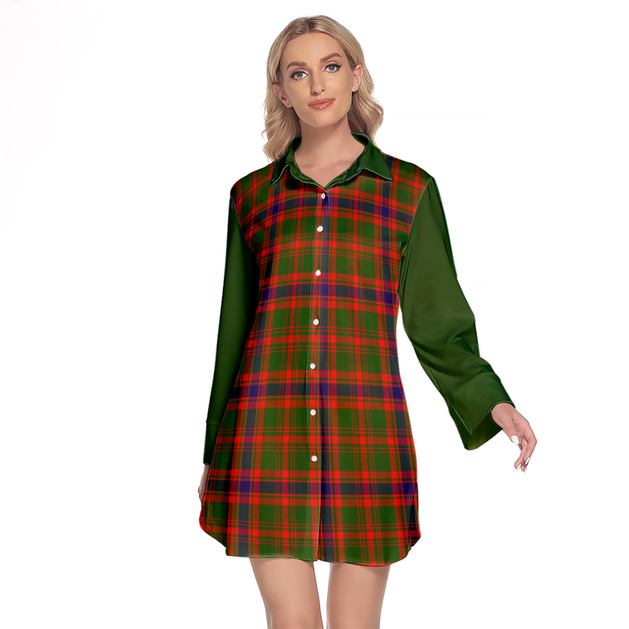 Kinninmont Tartan Women's Lapel Shirt Dress With Long Sleeve